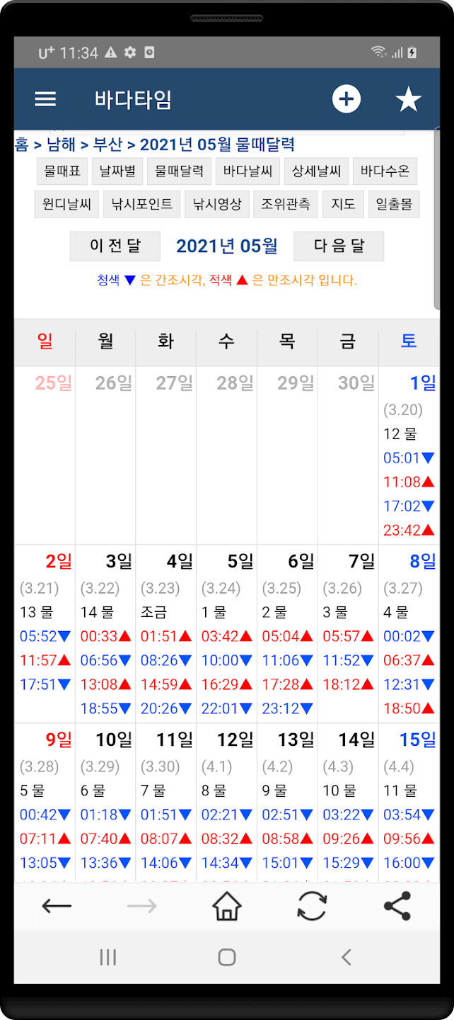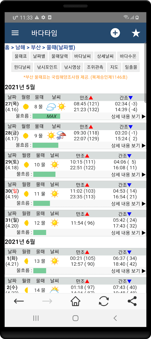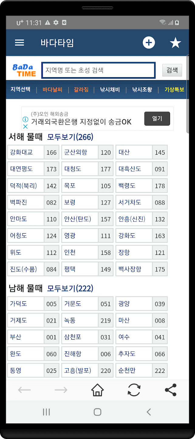 ✅ 국내에서 가장 많은 1420여 개 지역의 물때표